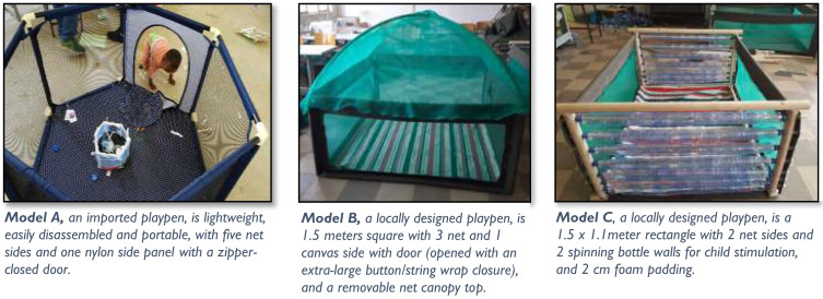 The persistence and pervasiveness of growth stunting in low- and middle-income countries spur reexamination of disease transmission pathways related to water, sanitation, and hygiene. Animal feces constitute a more important reservoir of enteric pathogens in homes in low-income countries than previously recognized, and exploratory object mouthing and direct ingestion of soil and animal feces represent underexplored exposure pathways. The effectiveness, adoption, constraints, and scale-up potential of measures for reducing infant and young children's exposure to fecal pathogens are recently beginning to be systematically explored. This mixed methods study tested the feasibility and appeal of using playpens to establish a hygienic "safe zone" for infants in rural Ethiopia. We conducted home trials of three playpen designs, including two models made from locally available materials through user-centered design. After using playpens for several weeks, caregivers reported extensive benefits, ranging from perceived safety to developmental and hygiene benefits for infants and relief from physical stress and worry for caregivers. We observed many playpens contaminated with Escherichia coli after weeks of use, though at concentrations below those of the common room floor on which infants might otherwise have played. Caregivers reported daily playpen use, but for intervals likely insufficient to protect infants from pathogen exposure affecting growth. We determine that playpens alone cannot plausibly protect infants from environmental contamination, but our results support further exploration of the potential benefits and commercial viability of scaling up use of playpens in rural, agricultural households as part of a comprehensive approach to child development and women's empowerment.