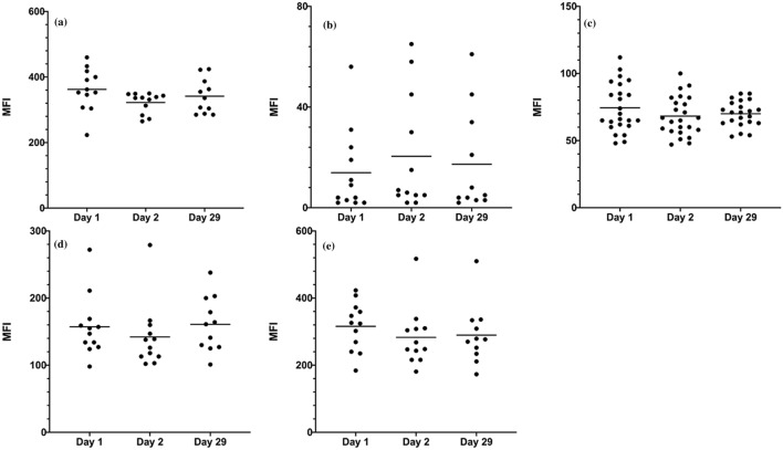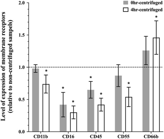 During eye closure, a large number of neutrophils (polymorphonuclear neutrophils, PMNs) invade the ocular surface and are often referred to as tear-film PMNs. While immunophenotyping experiments have been performed on tear-film PMNs, the impact of commonly used experimental procedures on their phenotype as well as their response to interleukin-8 (IL-8), a physiological inflammatory mediator, have not yet been investigated. A gentle eye wash method was used to collect cells at home. In the morning upon awaking, participants washed their eyes with sterile phosphate buffer saline (PBS) and collected the runoff into a sterile polypropylene tube. The cell collection was then delivered to the lab within two hours. The effects of centrifugation, incubation and fixation with paraformaldehyde (PFA) before (pre-fixed staining) or after (post-fixed staining) incubation with antibodies were characterized. Tear-film PMNs as well as blood PMNs (used for comparison) were also stimulated with IL-8. To assess the reproducibility of cell collection and variability in receptor expression over time, participants were also asked to collect cells three times over a period of a month. The change in expression of surface receptors, CD11b, CD16, CD55, CD66b, important inflammatory and activation markers, and CD45 (PAN leukocyte marker) was assessed by flow cytometry. Fixing tear-film PMNs prior to the staining with antibodies resulted in a significant (fivefold or more) reduction in the expression of CD11b, CD16 and CD45 when compared to unfixed samples, while CD16 was the only receptor to undergo significant downregulation upon post-staining fixation. Furthermore, additional centrifugation step prior to antibody incubation as well as long (4 h) incubation at 37 °C resulted in significant reductions in expression of CD11b, CD16 and CD55 when compared to control samples. As opposed to blood PMNs, stimulating tear-film PMNs with IL-8 did not induce any significant changes in expression of CD11b, CD16, CD55 and CD66b. When working with collected tear-film PMNs, our results suggest that any additional centrifugation and incubation step should be avoided, or at least limited, and post fixation staining is recommended in order to preserve cell phenotype and cell integrity of tear film PMNs. Our study also adds further information on the reproducibility of the gentle eye wash as well as the inability of tear-film PMNs to modulate their surface receptors upon stimulation with IL-8. The latter may be due to prior exposure to IL-8, activation in the closed-eye environment, or a reduced ability to respond to inflammatory stimulus. Further mechanistic studies will be needed to gain a better understanding of the tear-film neutrophil phenotype.