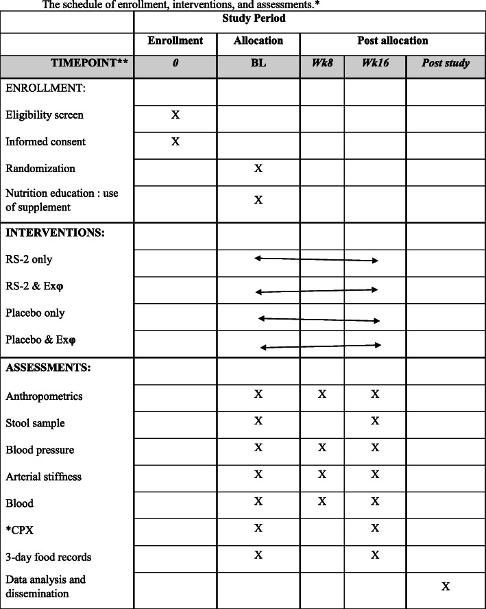 Discussion: This study has the potential to yield information about the effect of RS-2 supplementation on key biomarkers believed to impact upon the development of CVD in patients with CKD. We are examining whether there is an additive effect of exercise training and RS-2 supplementation on these key variables.