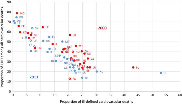 Decline of coronary heart disease mortality is strongly effected by changing patterns of underlying causes of death: an analysis of mortality data from 27 countries of the WHO European region 2000 and 2013
