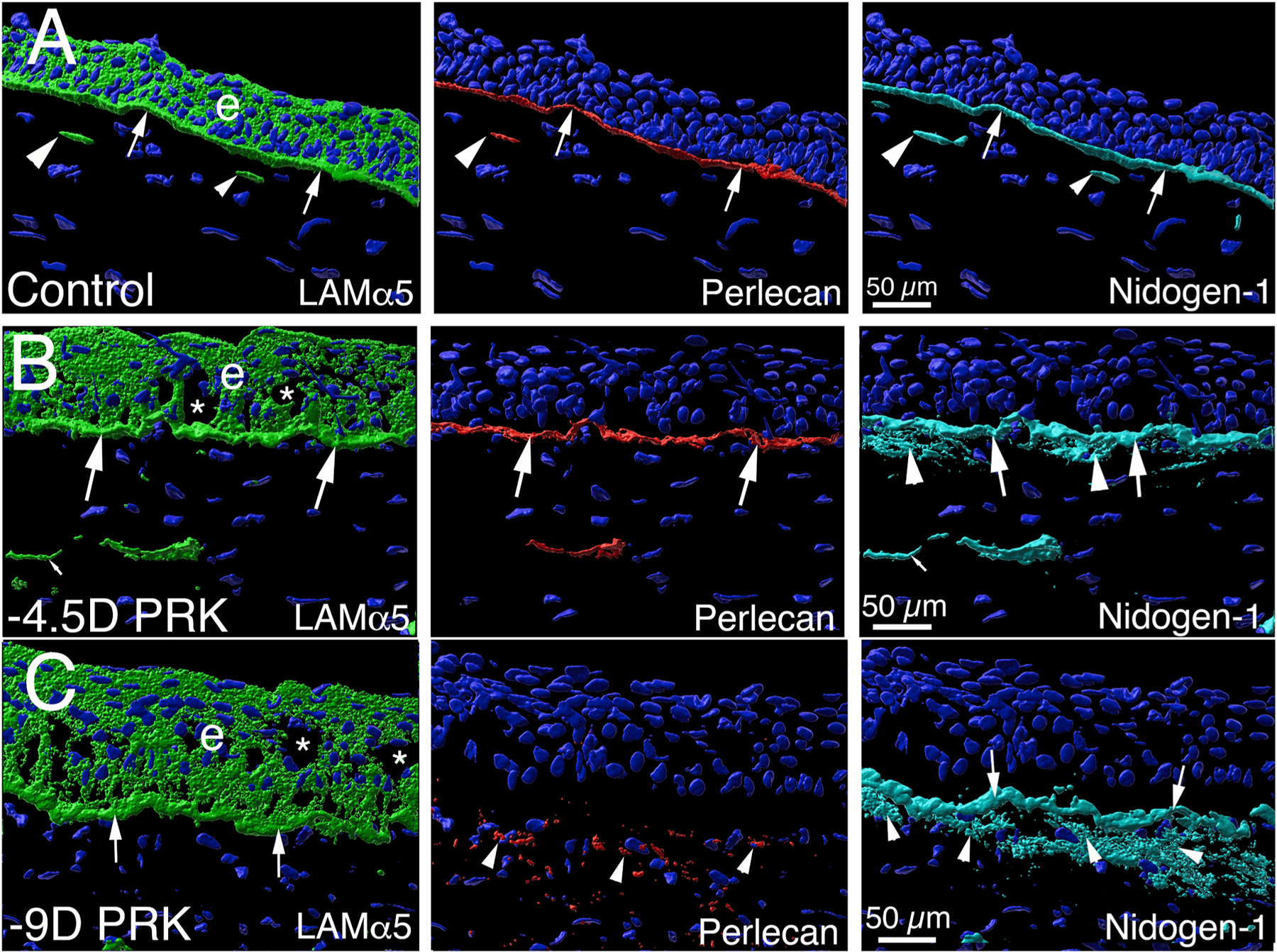 Keywords: Corneal fibroblasts; Corneal scarring; Epithelial barrier function; Epithelial basement membrane; Fibrocytes; Fibrosis; Macrophages; Monocytes; Myofibroblasts; Perlecan; Secretory vesicles; Transforming growth factor beta-1; Transforming growth factor beta-2.