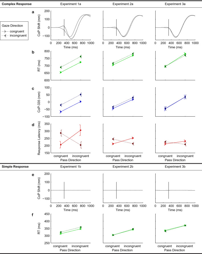 In three experiments, we investigated the effect of unconscious social priming on human behavior in a choice reaction time task. Photographs of a basketball player passing a ball to the left/right were used as target stimuli. Participants had to respond to the pass direction either by a whole-body (complex) response or a button-press (simple) response. Visually masked stimuli, showing both a task-relevant cue (pass direction) and a task-irrelevant, social cue (gaze direction), were used as primes. Subliminal social priming was found for kinematic (center of pressure) and chronometric measures (response times): gaze direction in the primes affected responses to the pass direction in the targets. The social priming effect diminished when gaze information was unhelpful or even detrimental to the task. Social priming of a complex behavior does not require awareness or intentionality, indicating automatic processing. Nevertheless, it can be controlled by top-down, strategic processes.