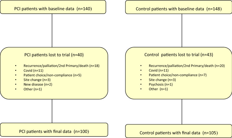 Methods: A pragmatic cluster preference randomised control trial with 15 consultants, 8 'using' and 7 'not using' the PCI intervention. Patients treated with curative intent (all sites, disease stages, treatments) were eligible.