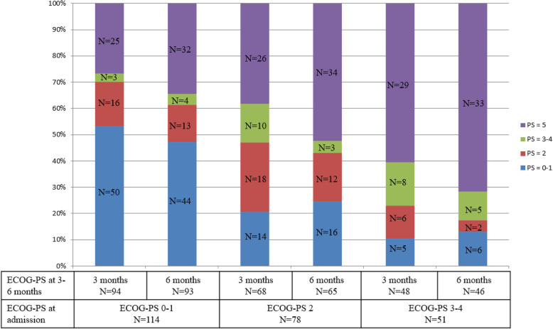 Conclusions: Factors associated with 6-month mortality are almost the same as those known to be associated with ICU mortality. We highlight that most patients recovered an ECOG-PS of 0-2 at 3 and 6 months, in particular those with a good ECOG-PS at ICU admission and could benefit from an anticancer treatment following ICU discharge.