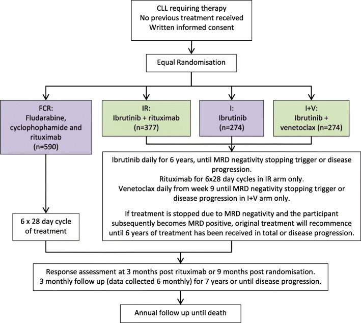 Keywords: Adding treatment arms; Chronic lymphocytic leukaemia; Complex innovative design; Confirmatory hypotheses; Flexible design; Multi-arm clinical trial; Platform trial; Randomised controlled trial; Statistical methodology; Trial management.