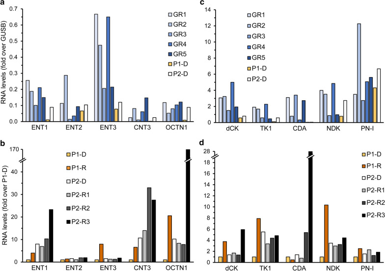 Methods: Towards the identification of tailored treatments for individual patients, we herein present the cases of relapsed AML patients, and compare them to patients displaying durable remissions following the same chemotherapeutic induction treatment. We quantified the expression levels of specific genes mediating drug transport and metabolism, nucleotide biosynthesis, and apoptosis, in order to decipher the molecular mechanisms underlying intrinsic and/or acquired chemoresistance modalities in relapsed patients. This was achieved by real-time PCR using patient cDNA, and could be readily implemented in the clinical setting.