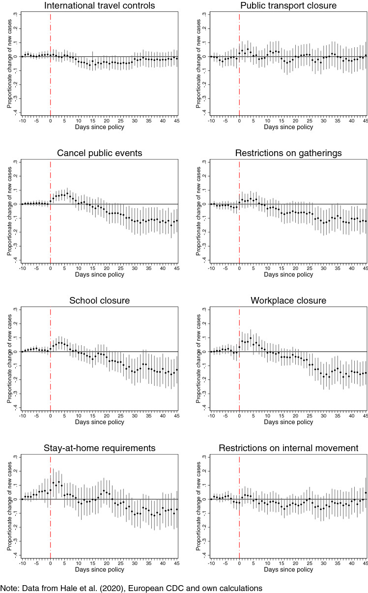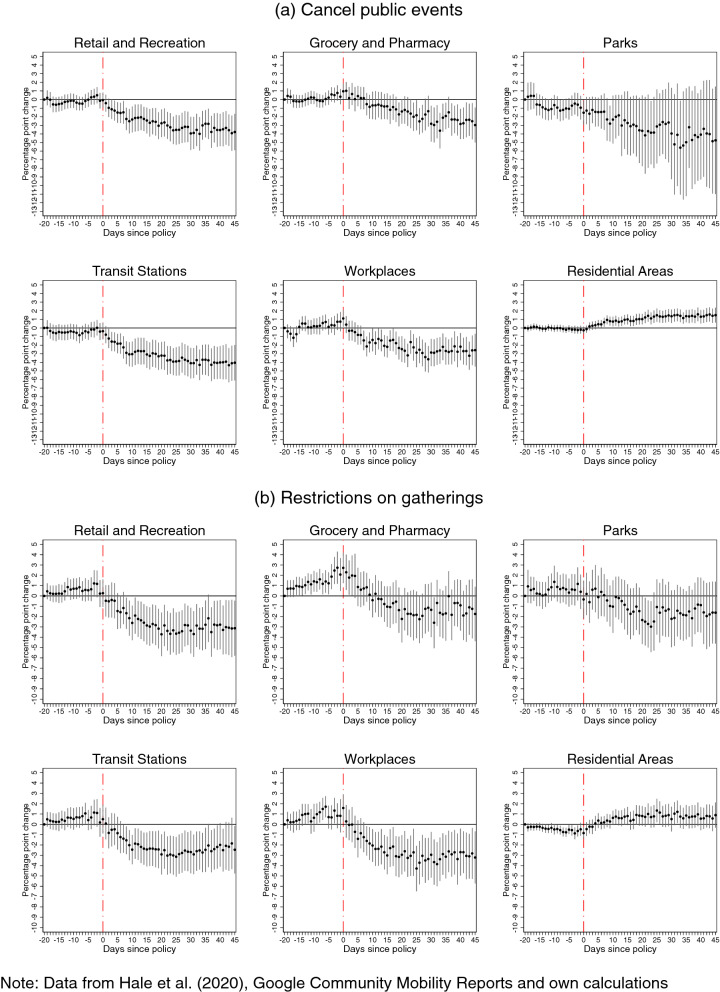 Estimating worldwide effects of non-pharmaceutical interventions on COVID-19 incidence and population mobility patterns using a multiple-event study