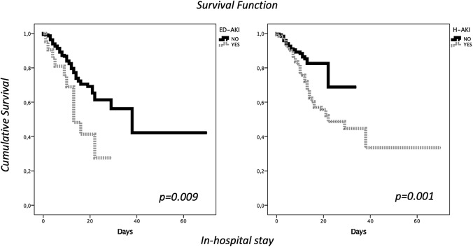 Methods: Our prospective observational cohort study includes 392 consecutive patients hospitalized for COVID-19 in Milan (median age 67 years, 75% male). We evaluated the relationship between blood pressure at presentation, presence of AKI at Emergency Department admission and during hospitalization, and total in-hospital mortality (24%).