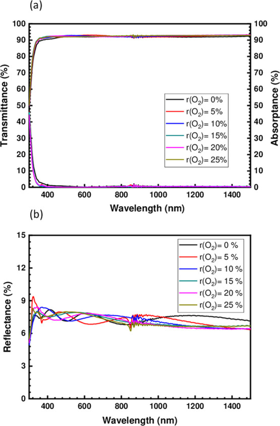 We report on the optical and morphological properties of silica thin layers deposited by reactive RF magnetron sputtering of a SiO2 target under different oxygen to total flow ratios [r(O2) = O2/Ar, ranging from 0 to 25%]. The refractive index (n), extinction coefficient, total transmission, and total reflectance were systematically investigated, while field-emission scanning electron microscopy, atomic force microscopy, and three-dimensional (3D) average roughness data construction measurements were carried out to probe the surface morphology. Contact angle measurements were performed to assess the hydrophilicity of our coatings as a function of the oxygen content. We performed a thorough numerical analysis using 1D-solar cell capacitance simulator (SCAPS-1D) based on the measured experimental optical properties to simulate the photovoltaic (PV) device performance, where a clear improvement in the photoconversion efficiency from 25 to 26.5% was clearly observed with respect to r(O2). Finally, a computational analysis using OptiLayer confirmed a minimum total reflectance of less than 0.4% by coupling a silica layer with n = 1.415 with another high-refractive-index (i.e., >2) oxide layer. These promising results pave the way for optimization of silica thin films as efficient antireflection and self-cleaning coatings to display better PV performance in a variety of locations including a desert environment.