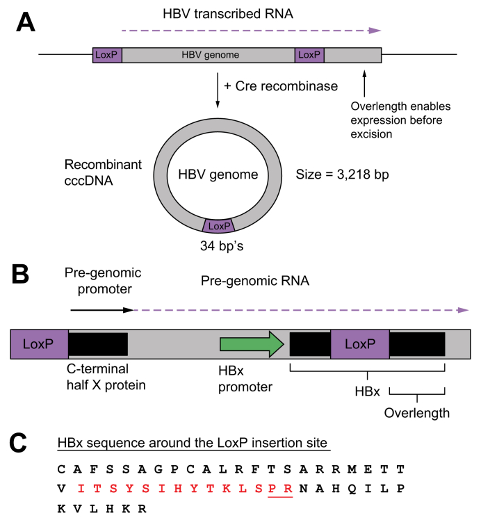 Methods: To solve these 2 problems, we generated a novel transgenic mouse (HBV1.1X), which generates an excisable circular HBV genome using Cre/LoxP technology. This model possesses a HBV1.1-mer cassette knocked into the ROSA26 locus and is designed for stable expression of viral proteins from birth, like the current HBV transgenic mouse model, before genomic excision with the introduction of Cre recombinase.