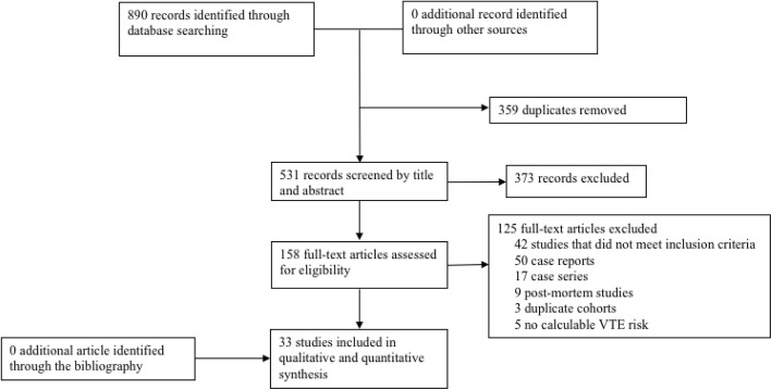 Methods: This meta-analysis included original articles in English published from January 1st, 2020 to June 15th, 2020 in Pubmed/MEDLINE, Embase, Web of science, and Cochrane. Outcomes were major VTE, defined as any objectively diagnosed pulmonary embolism (PE) and/or proximal deep vein thrombosis (DVT). Primary analysis estimated the risk of VTE, stratified by acutely and critically ill inpatients. Secondary analyses explored the separate risk of proximal DVT and of PE; the risk of major VTE stratified by screening and by type of anticoagulation.