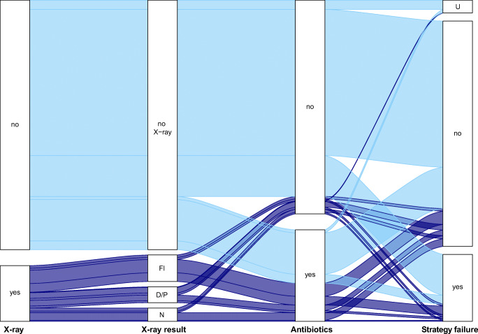 The aim of this study is to evaluate the influence of chest X-ray (CXR) results on antibiotic prescription in children suspected of lower respiratory tract infections (RTI) in the emergency department (ED). We performed a secondary analysis of a stepped-wedge, cluster randomized trial of children aged 1 month to 5 years with fever and cough/dyspnoea in 8 EDs in the Netherlands (2016-2018), including a 1-week follow-up. We analysed the observational data of the pre-intervention period, using multivariable logistic regression to evaluate the influence of CXR result on antibiotic prescription. We included 597 children (median age 17 months [IQR 9-30, 61% male). CXR was performed in 109/597 (18%) of children (range across hospitals 9 to 50%); 52/109 (48%) showed focal infiltrates. Children who underwent CXR were more likely to receive antibiotics, also when adjusted for clinical signs and symptoms, hospital and CXR result (OR 7.25 [95% CI 2.48-21.2]). Abnormalities on CXR were not significantly associated with antibiotic prescription.Conclusion: Performance of CXR was independently associated with more antibiotic prescription, regardless of its results. The limited influence of CXR results on antibiotic prescription highlights the inferior role of CXR on treatment decisions for suspected lower RTI in the ED. What is Known: • Chest X-ray (CXR) has a high inter-observer variability and cannot distinguish between bacterial or viral pneumonia. • Current guidelines recommend against routine use of CXR in children with uncomplicated respiratory tract infections (RTIs) in the outpatient setting. What is New: • CXR is still frequently performed in non-complex children suspected of lower RTIs in the emergency department • CXR performance was independently associated with more antibiotic prescriptions, regardless of its results, highlighting the inferior role of chest X-rays in treatment decisions.