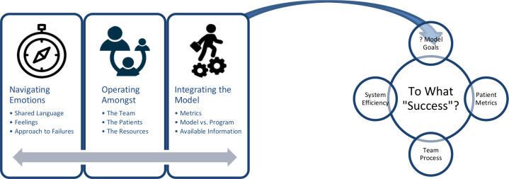 Results: We completed 11 focus groups and seven interviews (03/2018 to 01/2019) (n=45). Participants were 89.6% women, mostly Canadian trained and represented diverse rehabilitation professions. The implementation experience involved navigating emotions, operating among dynamics and integrating the RMoC details. Confident, satisfied early-adopter teams demonstrated traits including strong coping strategies; management support and being opportunistic and candid about failure. Teams faced common challenges (eg, emotions of change; delayed data access and lack of efficient, memorable communication across team and site). Implementation success targeted patient, team and system levels.