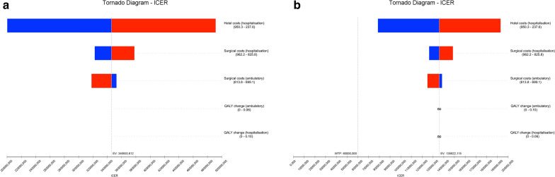 Results: Outpatient procedure was cost-saving in all models tested. At 3-month assessment ICER ranged from €135,753 to €345,755/QALY, higher than the predefined threshold of €60,000/QALY gained. At 6-month costs were lower and utilities were higher in outpatient, overpowering the inpatient procedure. Probabilistic sensitivity analysis showed that in 65% to 73% of simulations outpatient was the better option. The savings with outpatient were about 55% of inpatient values, with similar utility scores. No 30-day readmissions were recorded in either group.