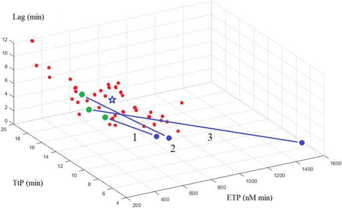 Keywords: Blood coagulation; Blood flow; Reaction–diffusion waves; Thrombin generation curves; Treatment.