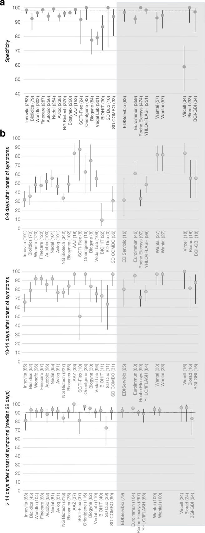 Performance of 30 commercial SARS-CoV-2 serology assays in testing symptomatic COVID-19 patients