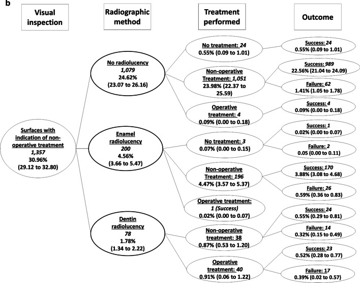 Background: To evaluate the clinical course and interventions required during two years of follow-up of dental surfaces of deciduous molars diagnosed, and consequently treated, by two different strategies: diagnosis made by clinical examination alone or associated with radiographs.