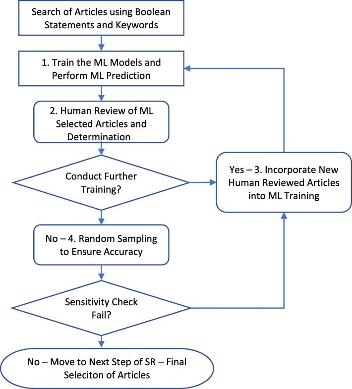 Results: The case study test of the approach proved a sensitivity (recall) in finding relevant articles during down selection that may rival many traditional processes and show ability to overcome most type II errors. The study achieved a sensitivity of 99.5% (213 out of 214) of total relevant articles while only conducting a human review of 31% of total articles available for review.