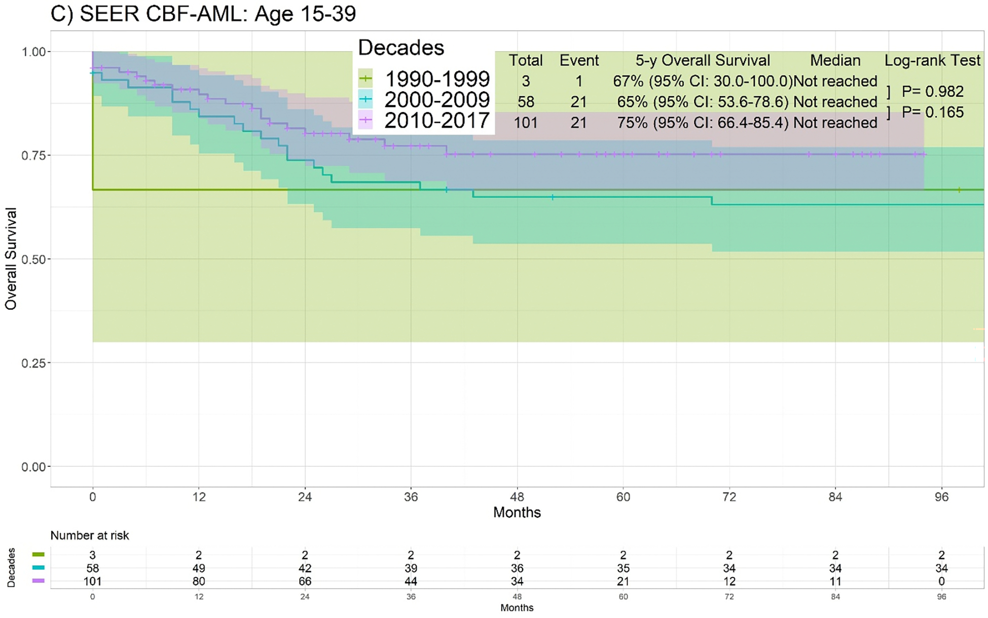 Conclusions: The outcomes of patients with AML showed incremental improvement over time in a population-based study of the Surveillance, Epidemiology, and End Results data. The introduction since 2017 of targeted therapies among older patients and optimizations in supportive care hopefully will continue to improve outcomes in AML, particularly among older patients.