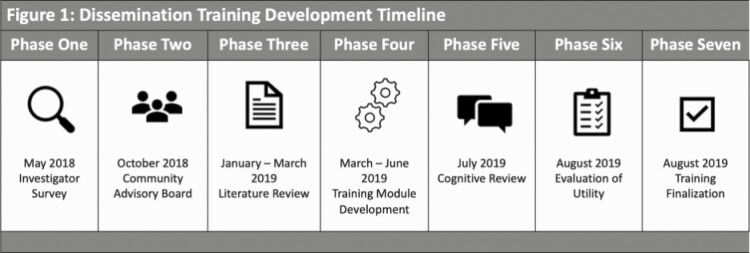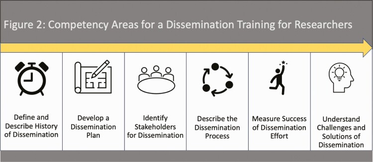 Dissemination of research beyond the academic community is an ethical responsibility of researchers and necessary in translational research to help ensure the uptake of research findings to improve health outcomes. Often, partnerships between community and academicians do not include research dissemination plans, possibly reflecting researchers not knowing how to create these plans. This manuscript details the development process of a research dissemination training module for academicians and researchers. This training was conceptualized and developed by Core faculty and staff. Development steps were: (a) identifying researchers' dissemination needs using the Core Investigator Survey; (b) identifying communities dissemination needs/preferences using feedback from our community advisory board; (c) conducting a literature search to identify dissemination concepts from researchers and community perspectives; (d) developing the training module; (e) conducting a cognitive review with one basic science researcher and one community-based participatory researcher; (f) evaluating the training; and (g) finalizing the training module. Training attendees included 1 clinical and 3 basic science clinical researchers, a biomedical postdoctoral fellow, and 10 research staff. Of those completing the feedback survey, 60% had some experience with research dissemination. As a result of training, more than 50% of respondents strongly agreed that as researchers they have a clear understanding of dissemination, a greater understanding of the dissemination process, how to identify stakeholders and successfully develop a dissemination plan. While disseminating research findings beyond academic publications may be new to some researchers, this training provided the tools to implement dissemination practices in their current and future research.