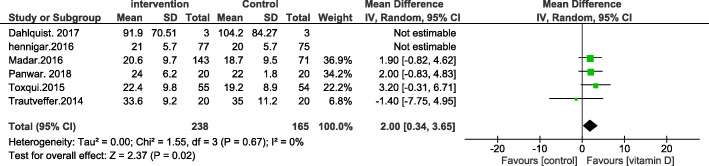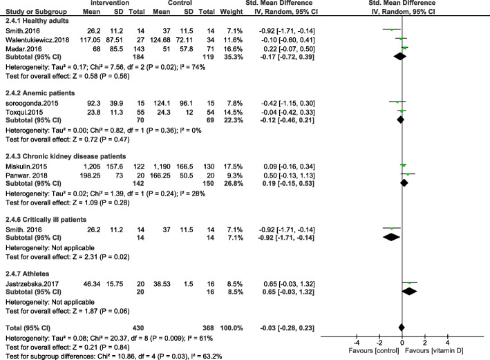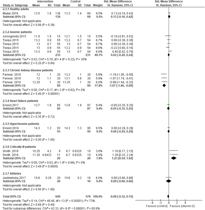 Meta-analysis of vitamin D supplementation and hemoglobin concentration: methodological faults obscure the interpretation of the data.Nutr J. 2021 Mar 19;20(1):22. doi: 10.1186/s12937-021-00681-w. Nutr J. 2021. PMID: 33740966 Free PMC article.