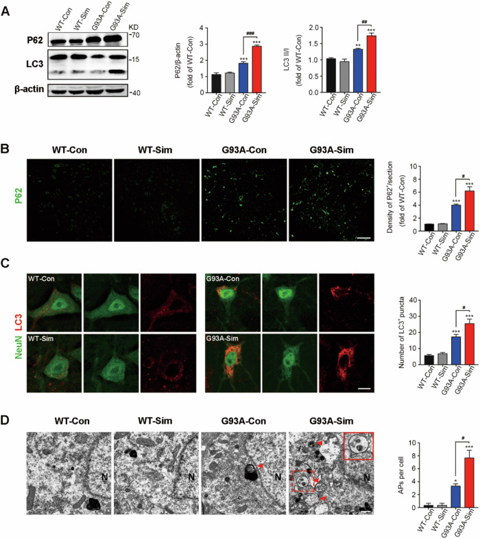 Amyotrophic lateral sclerosis (ALS) is a progressive neurodegenerative disease caused by motoneuron loss, for which there is currently no effective treatment. Statins, as inhibitors of 3-hydroxy-3-methylglutaryl-CoA (HMG-CoA) reductase, are used as drugs for treatment for a variety of disease such as ischemic diseases, neurodegenerative diseases, cancer, and inflammation. However, our previous evidence has demonstrated that simvastatin leads to cytotoxicity in NSC34-hSOD1G93A cells by aggravating the impairment of autophagic flux, but the role of simvastatin in ALS model remains elusive. In present study, we reported that after simvastatin treatment, SOD1G93A mice showed early onset of the disease phenotype and shortened life span, with aggravated autophagic flux impairment and increased aggregation of SOD1 protein in spinal cord motoneurons (MNs) of SOD1G93A mice. In addition, simvastatin repressed the ability of Rab7 localization on the membrane by inhibiting isoprenoid synthesis, leading to impaired late stage of autophagic flux rather than initiation. This study suggested that simvastatin significantly worsened impairment of late autophagic flux, resulting in massive MNs death in spinal cord and accelerated disease progression of SOD1G93A mice. Together, these findings might imply a potential risk of clinic application of statins in ALS.