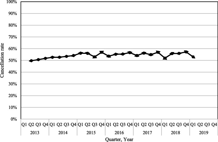 Background: For decades, Helicopter Emergency Medical Services (HEMS) contribute greatly to prehospital patient care by performing advanced medical interventions on-scene. Unnecessary dispatches, resulting in cancellations, cause these vital resources to be temporarily unavailable and generate additional costs. A previous study showed a cancellation rate of 43.5% in our trauma region. However, little recent data about cancellation rates and reasons exist, despite revision of dispatch protocols. This study examines the current cancellation rate in our trauma region over a six-year period. Additionally, cancellation reasons are evaluated per type of dispatch and initial incident report, upon which HEMS is dispatched.