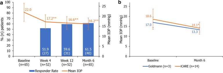 Results: Eighty-two patients were recruited in the UK and Ireland. After 6 months of PF Taf-T FC treatment, mean IOP was significantly reduced from 22.0 to 16.2 mmHg in the UK group and from 18.6 to 14.1 mmHg in the Ireland group. In the UK (65 patients), 49 adverse events (AEs) were reported, of which 3 were serious. No AEs were reported in the Ireland group (17 patients). Overall, 91.9% of UK physicians reported PF Taf-T FC treatment to be the same or better than prior medication for improving clinical signs; 90.0% of UK patients reported PF Taf-T FC treatment to have good or very good tolerability.
