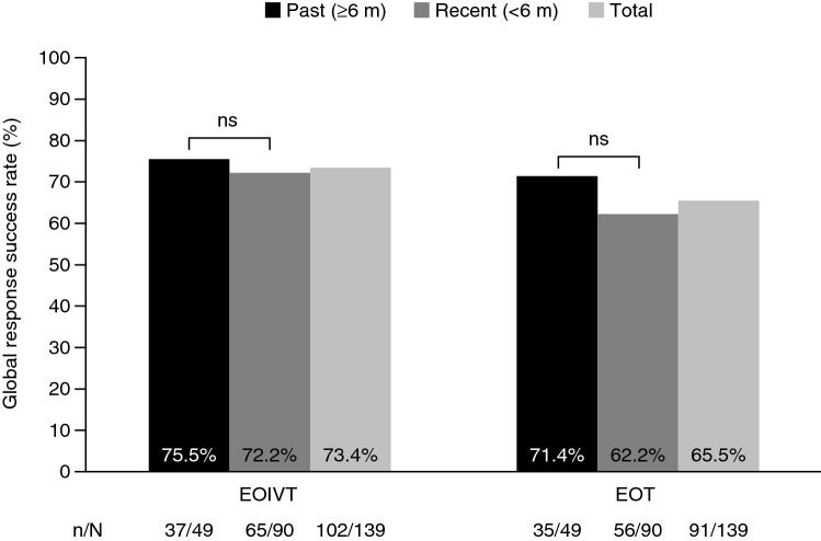 Results: The GRS rate in the overall population was 73.4% at EOIVT and 65.5% at EOT. Past or recent solid tumor diagnosis did not affect GRS at EOIVT or EOT (past: 75.5% and 71.4%; recent: 72.2% and 62.2%, respectively). All-cause mortality was 14.4% on day 14 and 20.1% at day 28. Most treatment-emergent adverse events were mild/moderate in severity (81.6%).