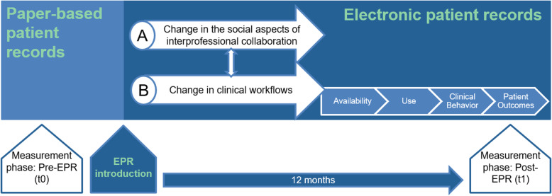 Discussion: This study will be the first to investigate the effects of introducing electronic patient records on interprofessional collaboration and clinical workflows from the perspective of healthcare professionals. Thereby, it will consider patients' safety, legal and ethical concerns and quality of care. The results will help to understand the organization and thereby improve the performance of health services working with electronic patient records.