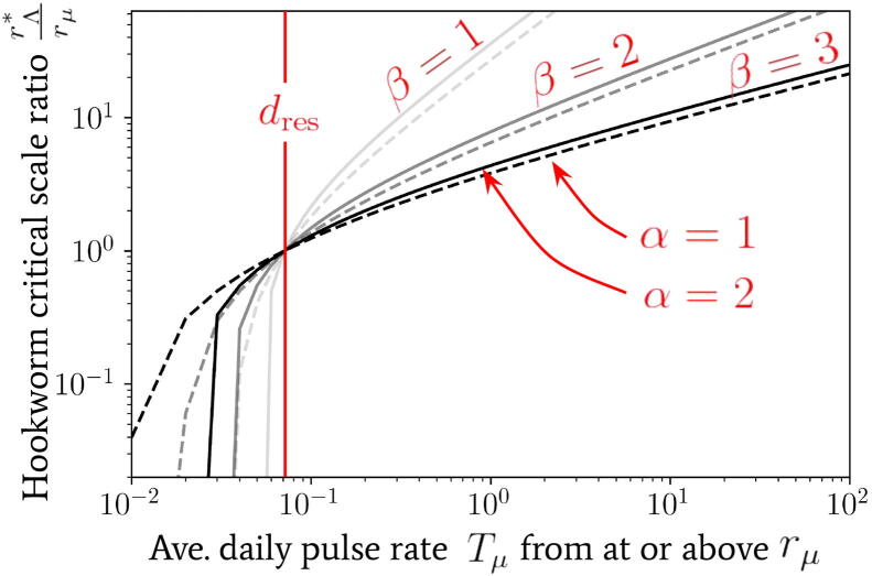 The life cycle of parasitic organisms that are the cause of much morbidity in humans often depend on reservoirs of infection for transmission into their hosts. Understanding the daily, monthly and yearly movement patterns of individuals between reservoirs is therefore of great importance to implementers of control policies seeking to eliminate various parasitic diseases as a public health problem. This is due to the fact that the underlying spatial extent of the reservoir of infection, which drives transmission, can be strongly affected by inputs from external sources, i.e., individuals who are not spatially attributed to the region defined by the reservoir itself can still migrate and contribute to it. In order to study the importance of these effects, we build and examine a novel theoretical model of human movement between spatially-distributed focal points for infection clustered into regions defined as 'reservoirs of infection'. Using our model, we vary the spatial scale of human moment defined around focal points and explicitly calculate how varying this definition can influence the temporal stability of the effective transmission dynamics - an effect which should strongly influence how control measures, e.g., mass drug administration (MDA), define evaluation units (EUs). Considering the helminth parasites as our main example, by varying the spatial scale of human movement, we demonstrate that a critical scale exists around infectious focal points at which the migration rate into their associated reservoir can be neglected for practical purposes. This scale varies by species and geographic region, but is generalisable as a concept to infectious reservoirs of varying spatial extents and shapes. Our model is designed to be applicable to a very general pattern of infectious disease transmission modified by the migration of infected individuals between clustered communities. In particular, it may be readily used to study the spatial structure of hosts for macroparasites with temporally stationary distributions of infectious focal point locations over the timescales of interest, which is viable for the soil-transmitted helminths and schistosomes. Additional developments will be necessary to consider diseases with moving reservoirs, such as vector-born filarial worm diseases.