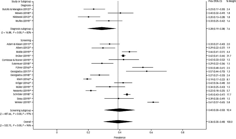 Conclusions: Prevalence rates of depressive symptoms and PTSD symptoms in RAS are notably large. They exceed the prevalence in the general German population. As a result of high heterogeneity, however, pooled prevalence rates should be interpreted with caution.
