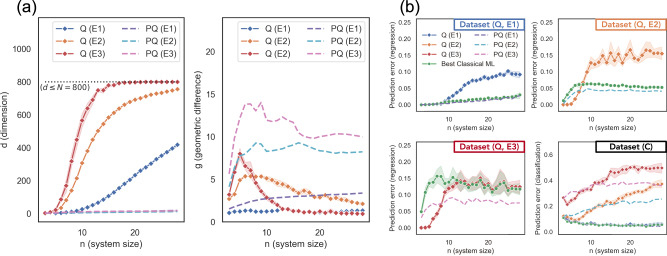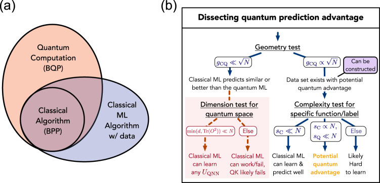 The use of quantum computing for machine learning is among the most exciting prospective applications of quantum technologies. However, machine learning tasks where data is provided can be considerably different than commonly studied computational tasks. In this work, we show that some problems that are classically hard to compute can be easily predicted by classical machines learning from data. Using rigorous prediction error bounds as a foundation, we develop a methodology for assessing potential quantum advantage in learning tasks. The bounds are tight asymptotically and empirically predictive for a wide range of learning models. These constructions explain numerical results showing that with the help of data, classical machine learning models can be competitive with quantum models even if they are tailored to quantum problems. We then propose a projected quantum model that provides a simple and rigorous quantum speed-up for a learning problem in the fault-tolerant regime. For near-term implementations, we demonstrate a significant prediction advantage over some classical models on engineered data sets designed to demonstrate a maximal quantum advantage in one of the largest numerical tests for gate-based quantum machine learning to date, up to 30 qubits.