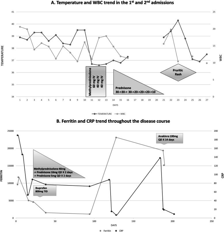 Adult onset Still's disease in the elderly: a case-based literature review.BMC Rheumatol. 2021 Apr 20;5(1):12. doi: 10.1186/s41927-021-00183-6. BMC Rheumatol. 2021. PMID: 33875007 Free PMC article.