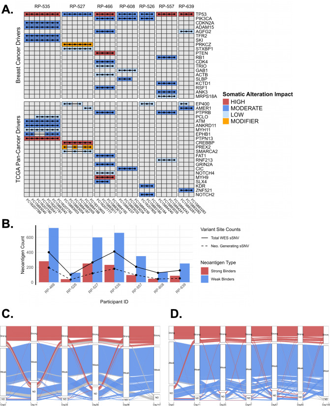 Results: We measured considerable variation in ctDNA tumor faction in each patient, often conflicting with RECIST imaging response metrics. In orthogonal sequencing, we found high concordance between targeted panel and whole exome sequencing in both variant detection and variant allele frequency estimation (specificity = 95.5%, VAF correlation, r = 0.949), Copy number remained generally stable, despite resolution limitations posed by low tumor fraction. Through modeling, we inferred and tracked distinct clonal populations specific to each patient and built phylogenetic trees revealing alterations in hallmark breast cancer drivers, including TP53, PIK3CA, CDK4, and PTEN. Our modeling revealed varied responses to therapy, with some individuals displaying stable clonal profiles, while others showed signs of substantial expansion or reduction in prevalence, with characteristic alterations of varied literature annotation in relation to the study drug. Finally, we predicted and tracked neoantigen-producing alterations across time, exposing translationally relevant detection patterns.