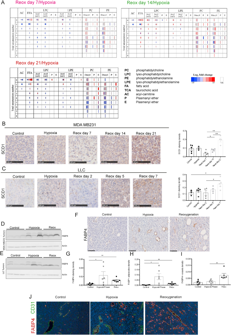 Results: We found that stearoyl-CoA desaturase-1 (SCD1) expressed by cancer cells and fatty acid binding protein-4 (FABP4) produced by tumor endothelial cells (TECs) and adipocytes in the tumor microenvironment (TME) are essential for tumor relapse in response to tyrosine kinase inhibitors (TKI) and chemotherapy. SCD1 and FABP4 were also found upregulated in recurrent human breast cancer samples and correlated with worse prognosis of cancer patients with different types of tumors. Mechanistically, SCD1 leads to fatty acid (FA) desaturation and FABP4 derived from TEM enhances lipid droplet (LD) in cancer cells, which cooperatively protect from oxidative stress-induced ferroptosis. We revealed that lipid mobilization and desaturation elicit tumor intrinsic antioxidant and anti-ferroptotic resources for survival and regrowth in a harsh TME. Inhibition of lipid transport from TME by FABP4 inhibitor reduced tumor regrowth and by genetic - or by pharmacological - targeting SCD1 in vivo, tumor regrowth was abolished completely.