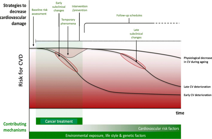 Conclusion: Efforts to minimize the CVD burden in cancer survivors are needed to accomplish healthy survivorship. This can be done by means of robust models predictive for CVD events or application of interventions during or after oncological treatments. Up to now there is insufficient evidence to implement preventive strategies in an unselected group of patients treated with potential cardiotoxic oncological treatments. We conclude that randomised controlled trials are needed that evaluate medical and lifestyle interventions in groups at increased risk for complications, in order to be able to influence chronic illness risks, such as cardiovascular complications, for cancer survivors.