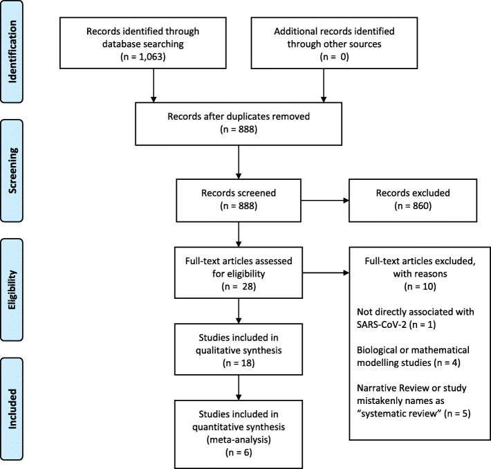 Methods: Nine databases (Medline, EMBASE, Cochrane Library, CINAHL, Web of Sciences, PDQ-Evidence, WHO's Global Research, LILACS, and Epistemonikos) were searched from December 1, 2019, to March 24, 2020. Systematic reviews analyzing primary studies of COVID-19 were included. Two authors independently undertook screening, selection, extraction (data on clinical symptoms, prevalence, pharmacological and non-pharmacological interventions, diagnostic test assessment, laboratory, and radiological findings), and quality assessment (AMSTAR 2). A meta-analysis was performed of the prevalence of clinical outcomes.