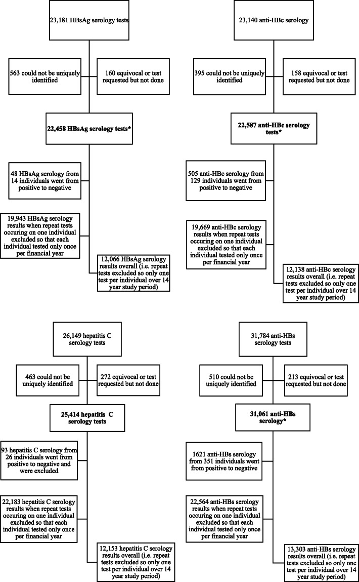Methods: This retrospective longitudinal study reviewed serological results and testing rates for hepatitis B, and hepatitis C performed in correctional facilities in the Northern Territory of Australia between July 1st, 2003 and June 30th, 2017.