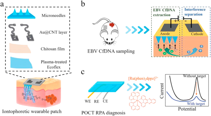 Keywords: AC, alternating current; APCs, antigen-presenting cells; ASSURED, affordable, sensitive, specific, user-friendly, rapid and robust, equipment-free and deliverable to end-users; Biomarker detection; Biosensor; CMOS, complementary metal-oxide semiconductor; COVID, coronavirus disease; COVID-19; CSF, cerebrospinal fluid; CT, computerised tomography; CV, cyclic voltammetry; DC, direct current; DNA, deoxyribonucleic acid; DPV, differential pulse voltammetry; EBV, Epstein–Barr virus; EDC/NHS, 1-ethyl-3-(3-dimethylaminoproply) carbodiimide/N-hydroxysuccinimide; ELISA, enzyme-linked immunosorbent assay; GOx, glucose oxidase; HIV, human immunodeficiency virus; HPLC, high performance liquid chromatography; HRP, horseradish peroxidase; IP, iontophoresis; ISF, interstitial fluid; IgG, immunoglobulin G; Infectious disease; JEV, Japanese encephalitis virus; MN, microneedle; Microneedle; NA, nucleic acid; OBMT, one-touch-activated blood multidiagnostic tool; OPD, o-phenylenediamine; PCB, printed circuit board; PCR, polymerase chain reaction; PDMS, polydimethylsiloxane; PEDOT, poly(3,4-ethylenedioxythiophene); PNA, peptide nucleic acid; PP, polyphenol; PPD, poly(o-phenylenediamine); PoC, point-of-care; Point-of-care diagnostics (PoC); SALT, skin-associated lymphoid tissue; SAM, self-assembled monolayer; SEM, scanning electron microscope; SERS, surface-enhanced Raman spectroscopy; SWV, square wave voltammetry; Skin; TB, tuberculosis; UV, ultraviolet; VEGF, vascular endothelial growth factor; WHO, World Health Organisation; cfDNA, cell-free deoxyribonucleic acid.