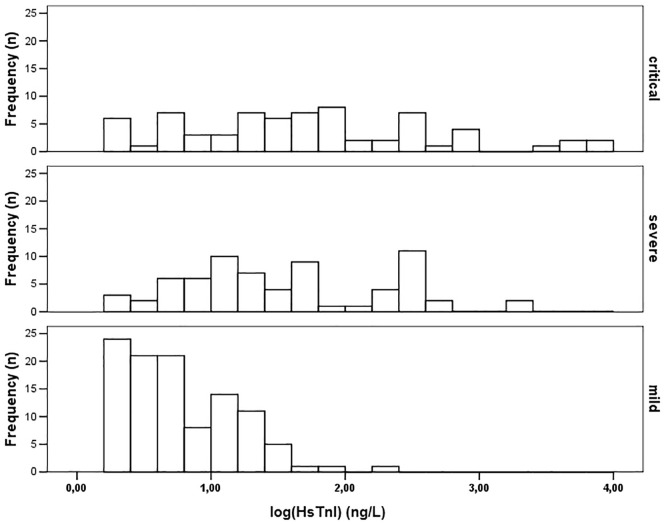 Conclusions: In this study we demonstrate that hs-Tn can significantly predict disease severity, intubation need and in-hospital death. Therefore, it may be reasonable to use Hs-Tn as a clinical tool in COVID-19 patients in order to triage them into different risk groups and can play a pivotal role in the detection of subjects at high risk of cardiac impairment during both the early and recovery stage.