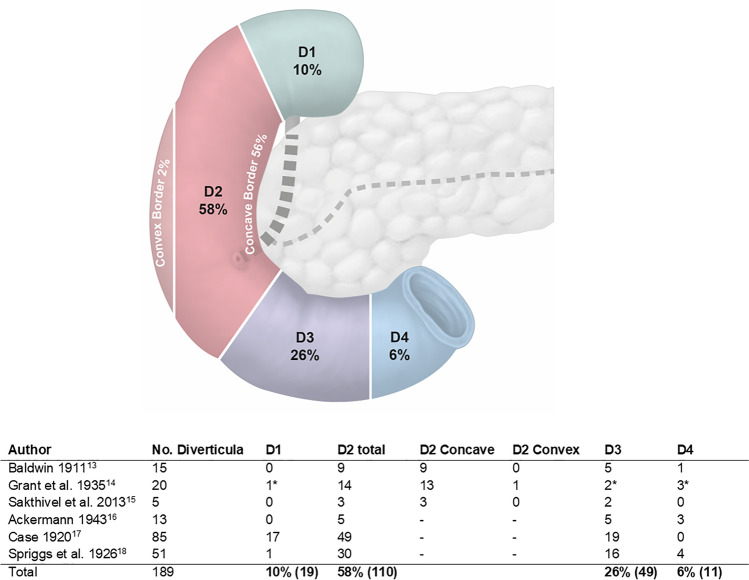 - Jones TW, Merendino KA. The perplexing duodenal diverticulum. Surgery. 1960;48:1068–1084. - PubMed