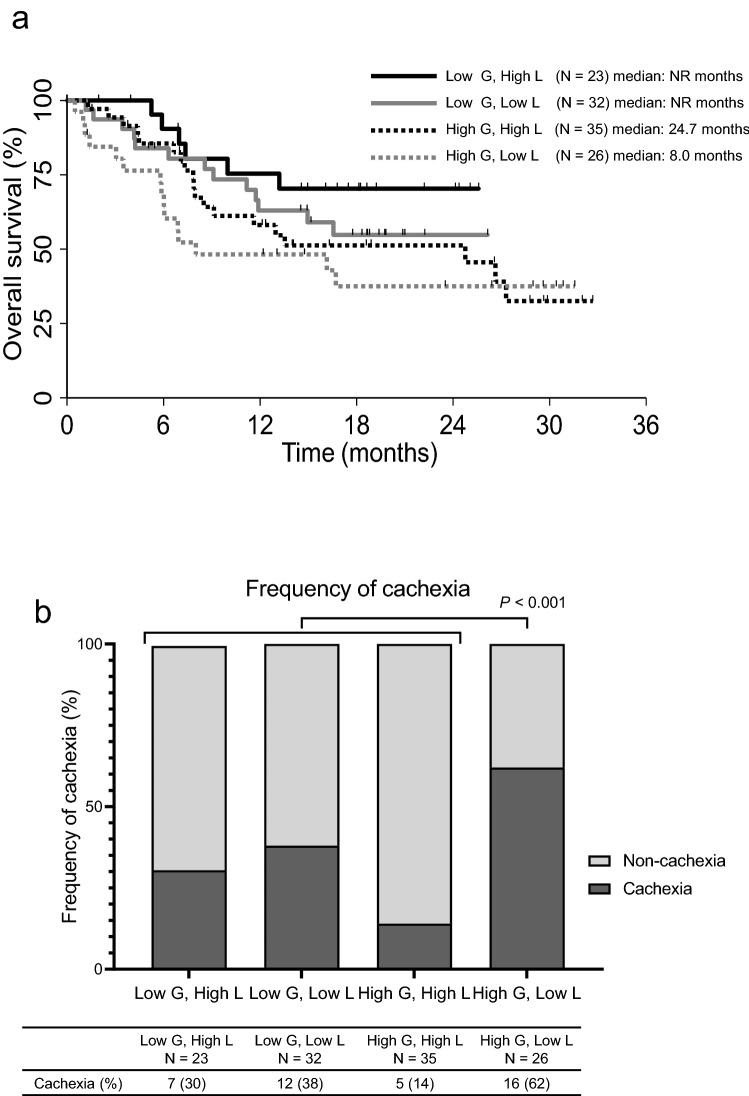Patients and methods: Consecutive patients with advanced NSCLC treated with pembrolizumab were retrospectively enrolled in the study. Serum levels of pro-inflammatory cytokines and appetite-related hormones, which are related to the pathogenesis of cancer cachexia, were analyzed. Cancer cachexia was defined as (1) a body weight loss > 5% over the past 6 months, or (2) a body weight loss > 2% in patients with a body mass index < 20 kg/m2.