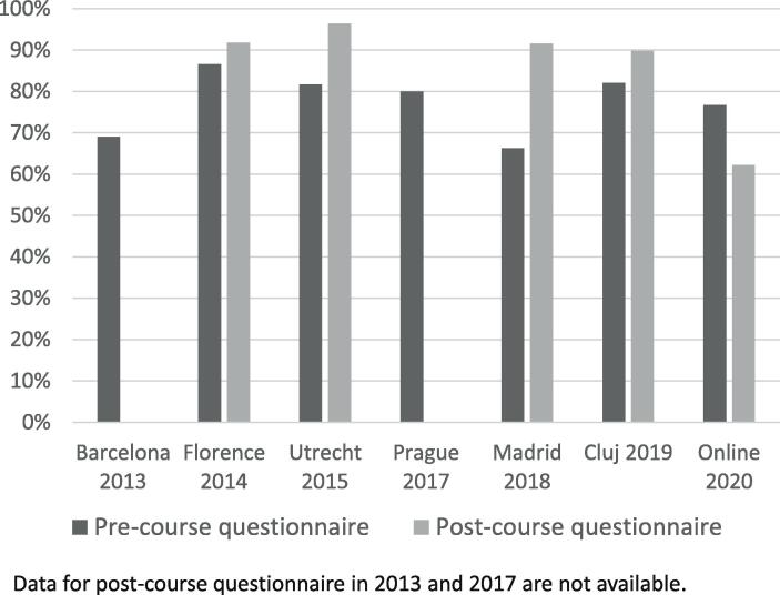 Introduction: In 2020, the ESTRO course on image-guided radiotherapy and chemotherapy in gynaecological cancer was converted into an online version due to the COVID-19 pandemic. This paper describes the change process and evaluates the impact on participants compared with previous live courses.