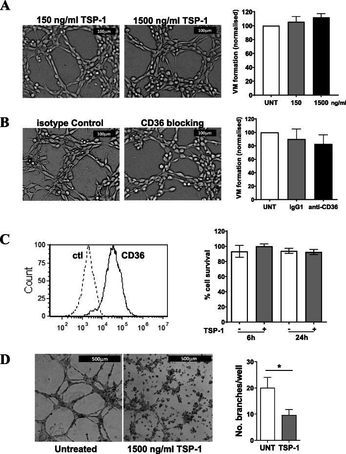Conclusions: Taken together, this study suggests that CD36 is a novel regulator of VM by melanoma cancer cells that is facilitated, at least in part, via integrin-α3 and laminin. Unlike angiogenesis, VM is not perturbed by the presence of TSP-1, thus providing new information on differences between these two processes of tumor vascularization which may be exploited to combat cancer progression.