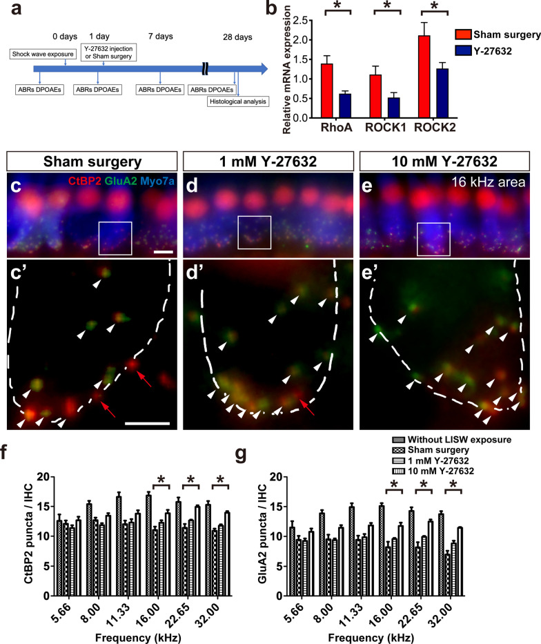 Y-27632, a ROCK inhibitor, improved laser-induced shock wave (LISW)-induced cochlear synaptopathy in mice
