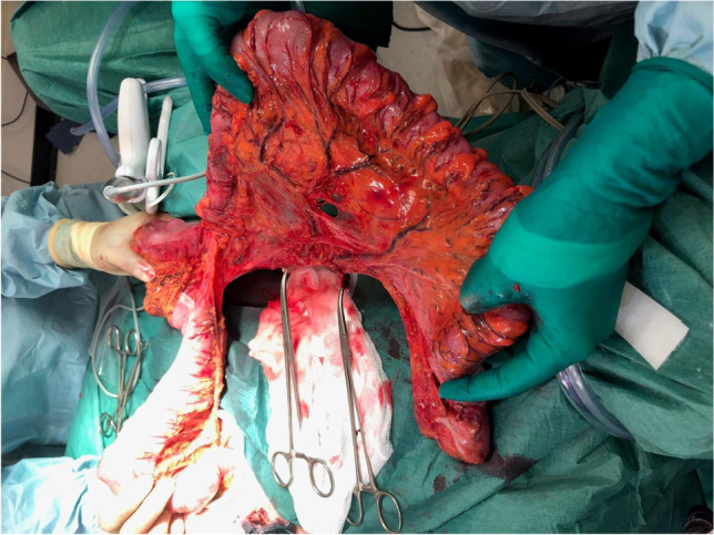 Long splenic flexure carcinoma requiring laparoscopic extended left hemicolectomy with CME and transverse-rectal anastomosis: technique for a modified partial Deloyers in 5 steps to achieve enough reach and preserving middle colic vessels