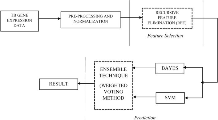 Tuberculosis has the most considerable death rate among diseases caused by a single micro-organism type. The disease is a significant issue for most third-world countries due to poor diagnosis and treatment potentials. Early diagnosis of tuberculosis is the most effective way of managing the disease in patients to reduce the mortality rate of the infection. Despite several methods that exist in diagnosing tuberculosis, the limitations ranging from the cost in carrying out the test to the time taken to obtain the results have hindered early diagnosis of the disease. This work aims to develop a predictive model that would help in the diagnosis of TB using an extended weighted voting ensemble method. The method used to carry out this research involved analyzing tuberculosis gene expression data obtained from GEO (Transcript Expression Omnibus) database and developing a classification model to aid tuberculosis diagnosis. A classifier combination of Naïve Bayes (NB), and Support Vector Machine (SVM) was used to develop the classification model. The weighted voting ensemble technique was used to improve the classification model's performance by combining the classification results of the single classifier and selecting the group with the highest vote based on the weights given to the single classifiers. Experimental analysis indicates a performance accuracy of the enhanced ensemble classifier as 0.95, which showed a better performance than the single classifiers, which had 0.92, and 0.87 obtained from SVM and NB, respectively. The developed model can also assist health practitioners in the timely diagnosis of tuberculosis, which would reduce the mortality rate caused by the disease, especially in developing countries.