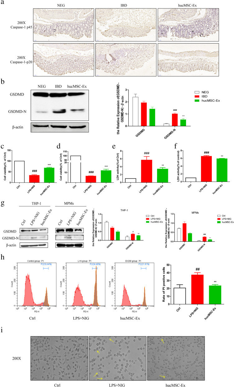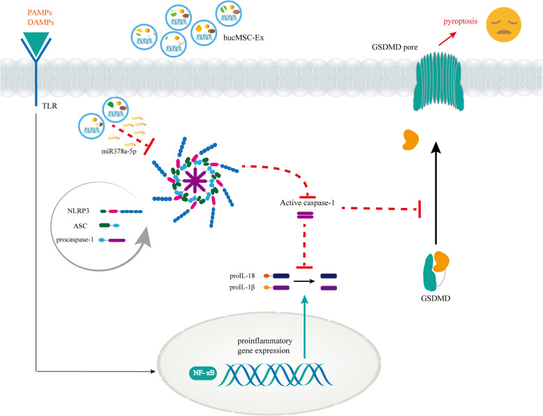 Conclusion: hucMSC-derived exosomes carrying miR-378a-5p inhibited NLRP3 inflammasomes and abrogated cell pyroptosis to protect against DSS-induced colitis.