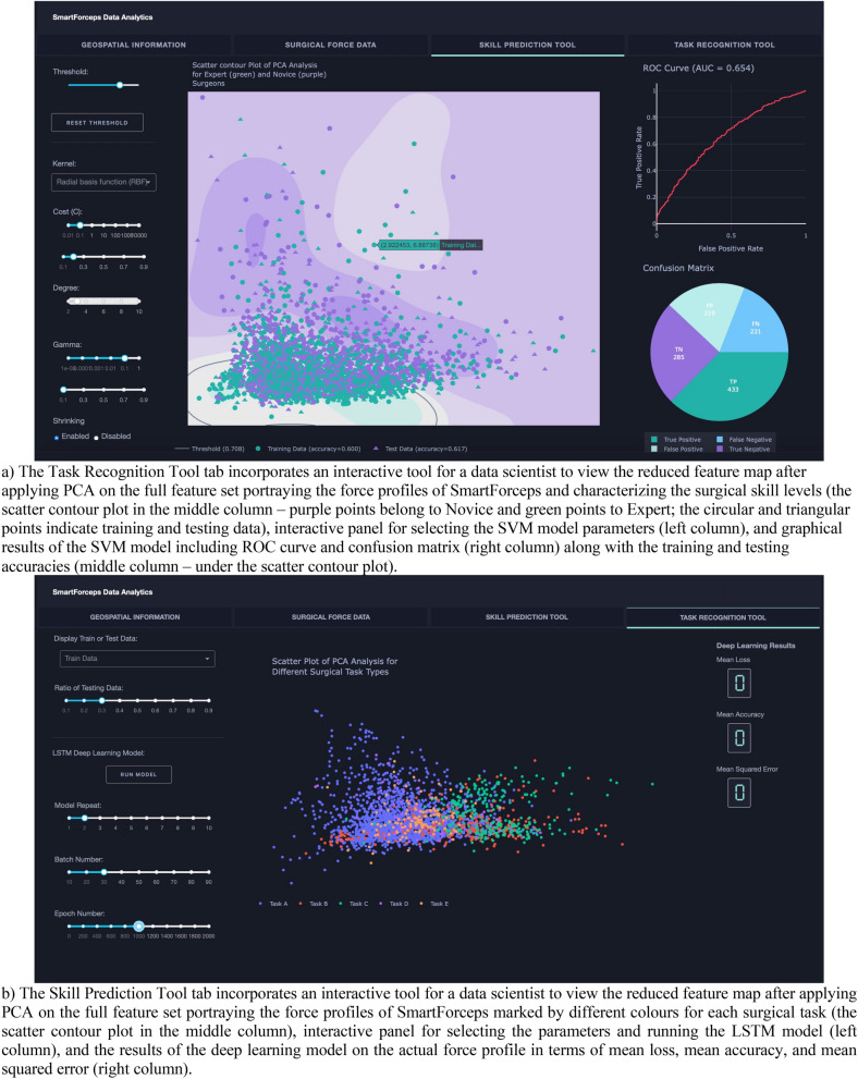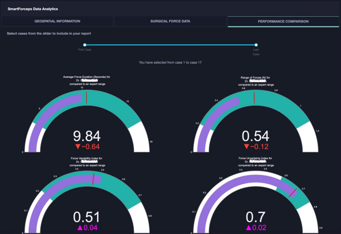 Surgical error and resulting complication have significant patient and economic consequences. Inappropriate exertion of tool-tissue force is a common variable for such error, that can be objectively monitored by sensorized tools. The rich digital output establishes a powerful skill assessment and sharing platform for surgical performance and training. Here we present SmartForceps data app incorporating an Expert Room environment for tracking and analysing the objective performance and surgical finesse through multiple interfaces specific for surgeons and data scientists. The app is enriched by incoming geospatial information, data distribution for engineered features, performance dashboard compared to expert surgeon, and interactive skill prediction and task recognition tools to develop artificial intelligence models. The study launches the concept of democratizing surgical data through a connectivity interface between surgeons with a broad and deep capability of geographic reach through mobile devices with highly interactive infographics and tools for performance monitoring, comparison, and improvement.